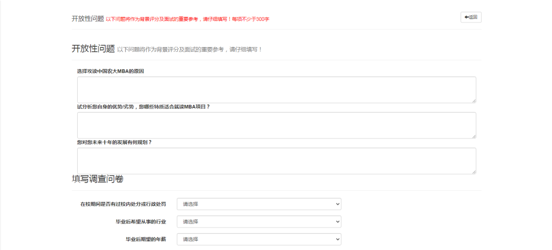 第一题、选择攻读中国农大MBA的原因。(300字以上)