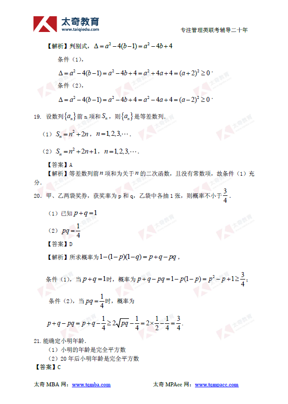 2019年MBA/MPAcc管理类联考数学真题及答案(7)