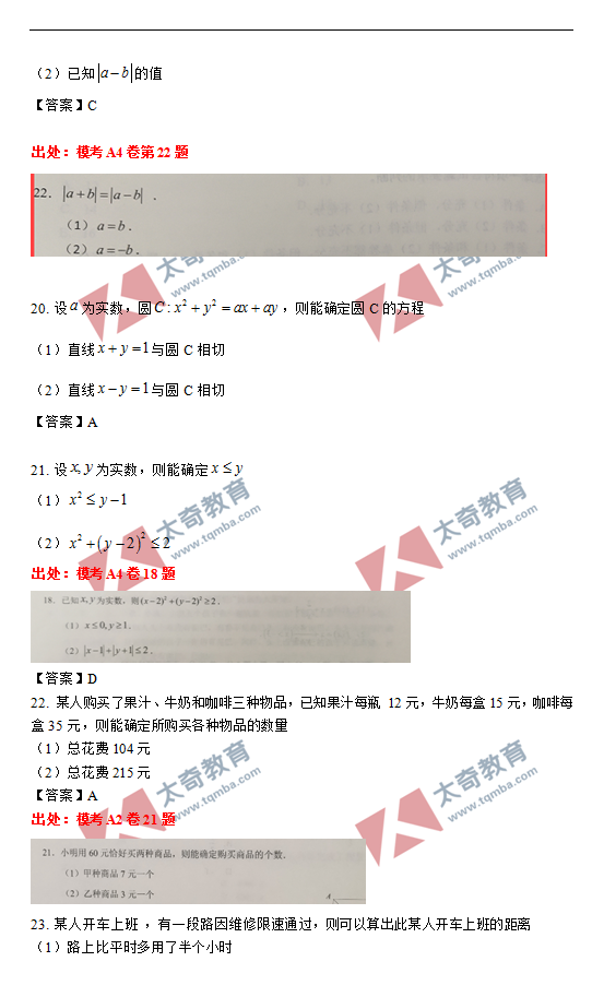 太奇2021年MBA管理类联考数学真题命中对照(8)