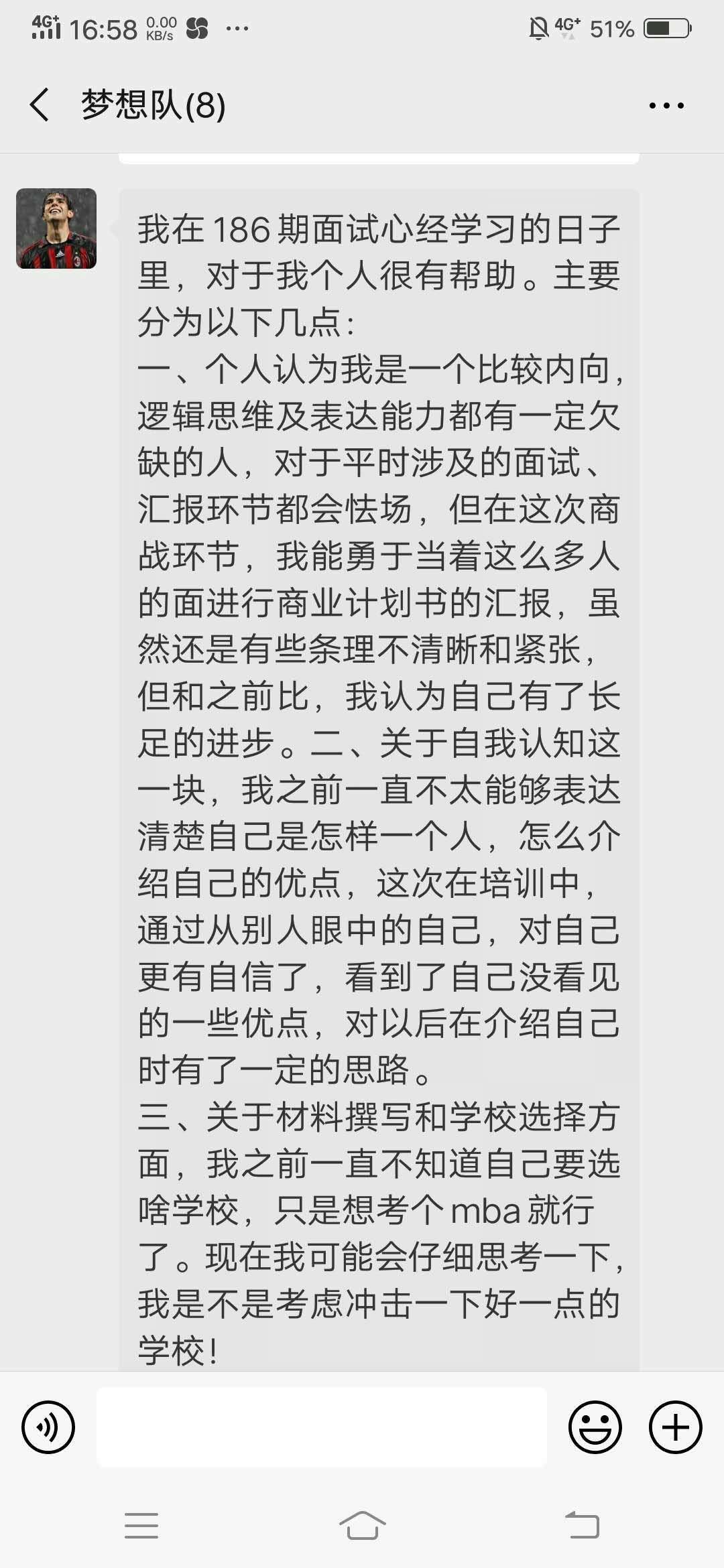 第一天就晚上的开场,整个人是错愕的,我不过是来了解MBA学习的,至于这么打鸡血吗?现在知道了,如果不是这样,你可能根本就没有办法参与到接下来的高强度的训练当中来;