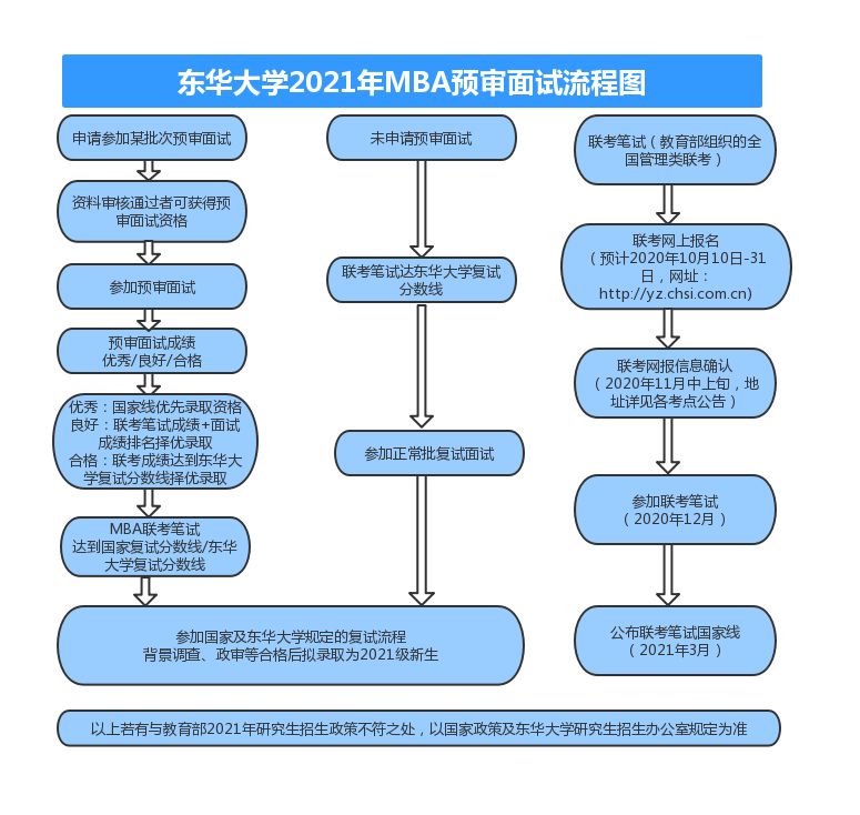 三、东华大学2021年MBA具体报名及预审面试时间安排