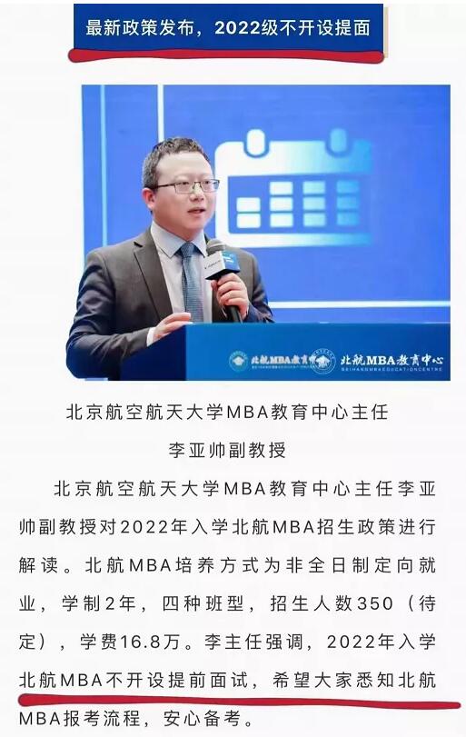 官方回复:北航研究生院禁止任何形式的优先录取情况,如提前批面试。MBA教育中心曾试图开展夏令营等活动代替提前批面试,均被研究生院驳回