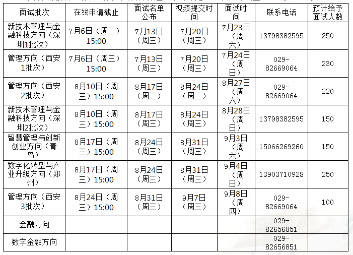 金融方向及数字金融方向面试时间另行通知或者详见经金学院网站通知(http://sef.xjtu.edu.cn/index.htm)。