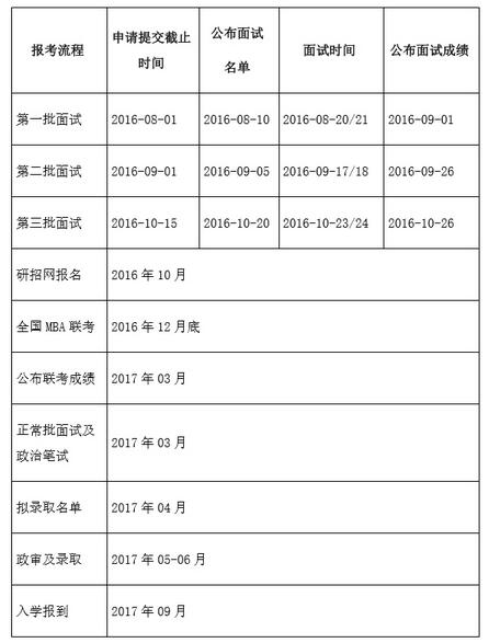 2017年MBA招生将采取提前批面试方式。提前批面试取得“条件录取资格”计划数为招生计划总数的50%。(详细方案见第六部分)