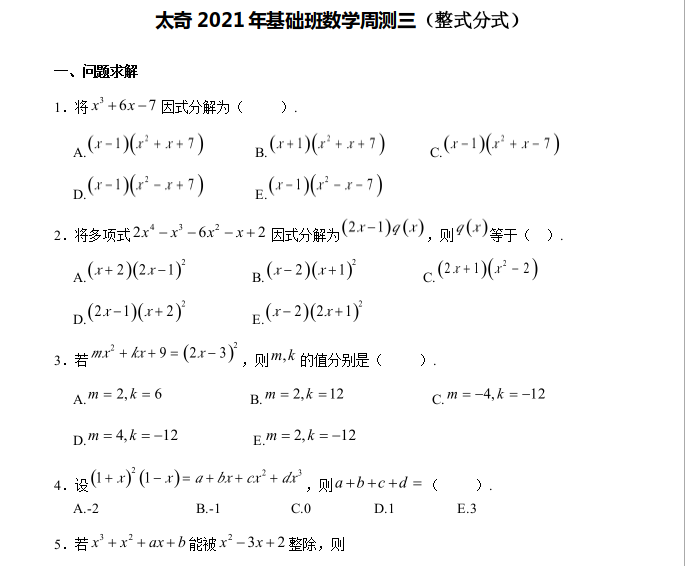 【数学】太奇MBA2021年基础班数学周测三